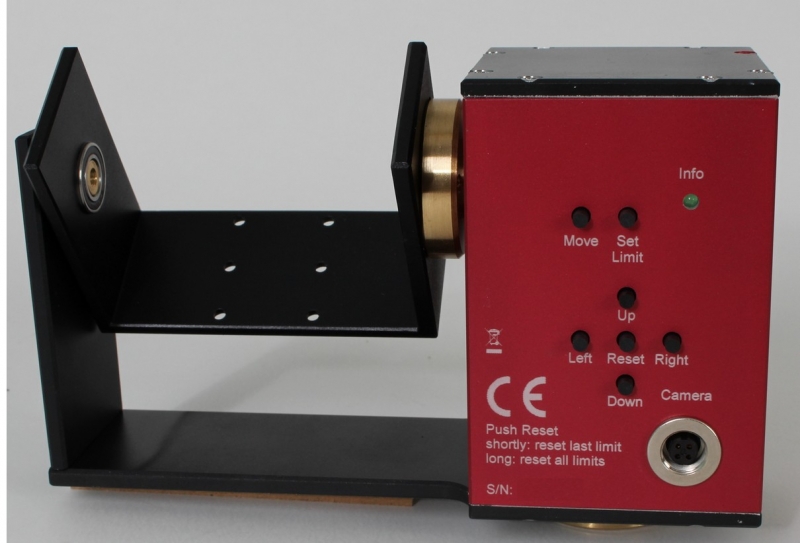 The camera dAV-Cr is mounted on the pan/tilt unit and can be controlled via the receiver dAV-Cr. The pan/tilt unit is supplied by the camera, further wiring is not necessary. The end stops can be set by buttons at the pan/tilt unit (e.g. if the camera would crash into something when moved).